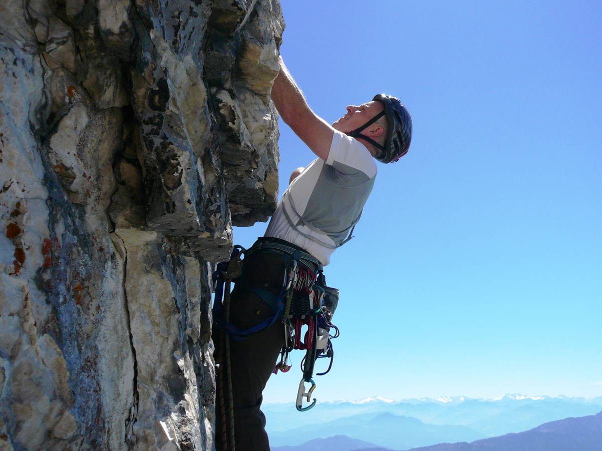 „Con Sforza“ - Stephan Lissel in der 1. Länge (7/7+), Foto: G. Draeger >Nächstes Foto (Nr. 3 von 12) >Zurück zur Guffert-Übersicht |