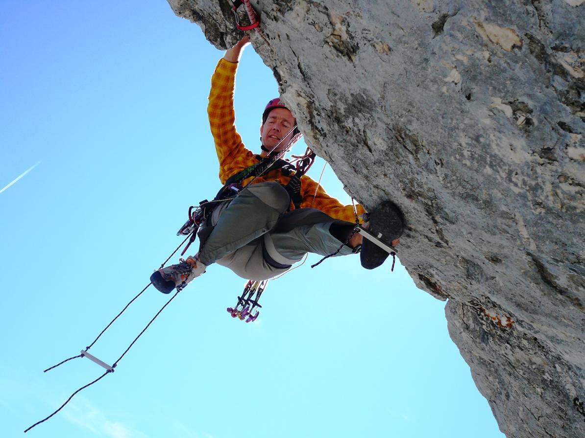 „Con Sforza“ - Georg Draeger in der 5. Länge (7-, 3 p.a.), Foto: Archiv Draeger >Nächstes Foto (Nr. 8 von 12) >Zurück zur Guffert-Übersicht |