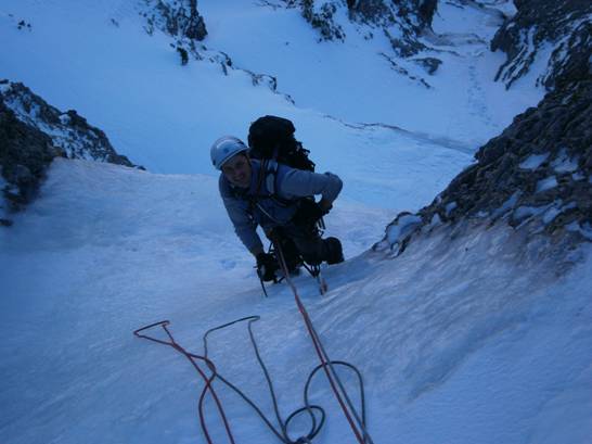 - "Königlich-Bayerische Eisrinnen-Jagd" (1000 m, WI5-, M4, E4) (pdf-Topo-dwonload) <<Fotos>>