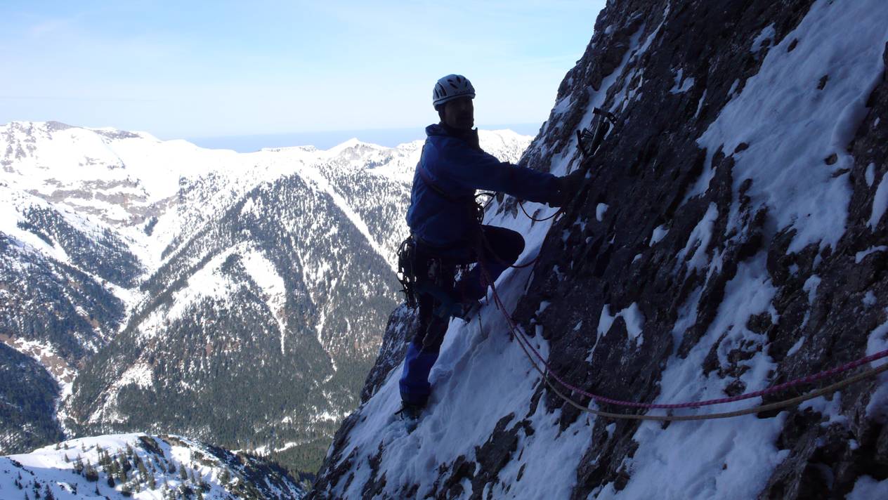 Ralf Sussmann bei der Erstbegehung in der 3. Länge (M4)