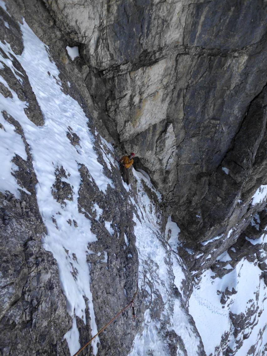 Andreas Wunsch bei der Erstbegehung in der 3. Länge (M4)