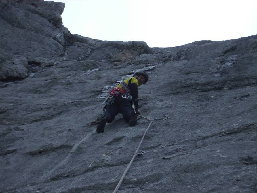 „Gerald Sussmann an der Schlüsselstelle (8, 1. Länge). Foto: R. Sussmann >Nächstes Foto (Nr. 6 von 9) >Zurück zur Guffert-Übersicht