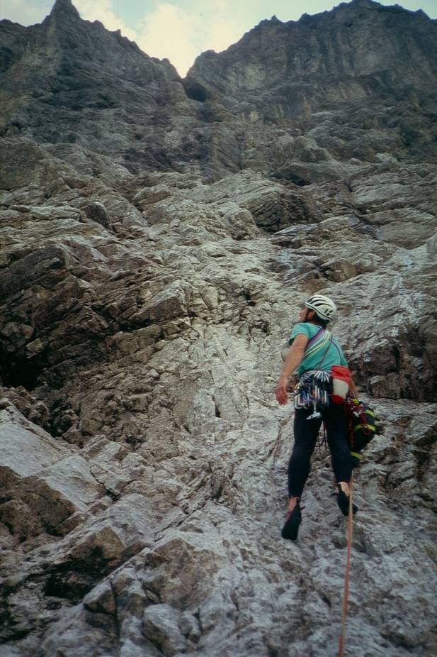Ralf Sussmann im Einstiegsbereich der Plattenspitze Ostgipfel-Nordwand Foto R. Baur >Nächstes Foto (Nr. 4 von 15) >Zurück zur Karwendel-Übersicht |