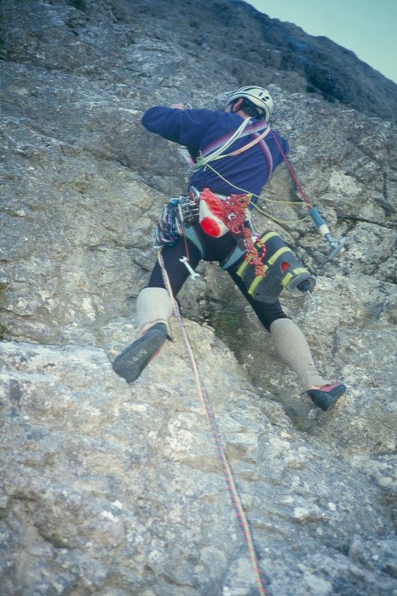 „Im Schatten der Sphinx“ - Ralf Sussmann in der 5. Seillänge bei der Erstbegehung Foto: Richard Baur >Nächstes Foto (Nr. 6 von 15) >Zurück zur Karwendel-Übersicht |