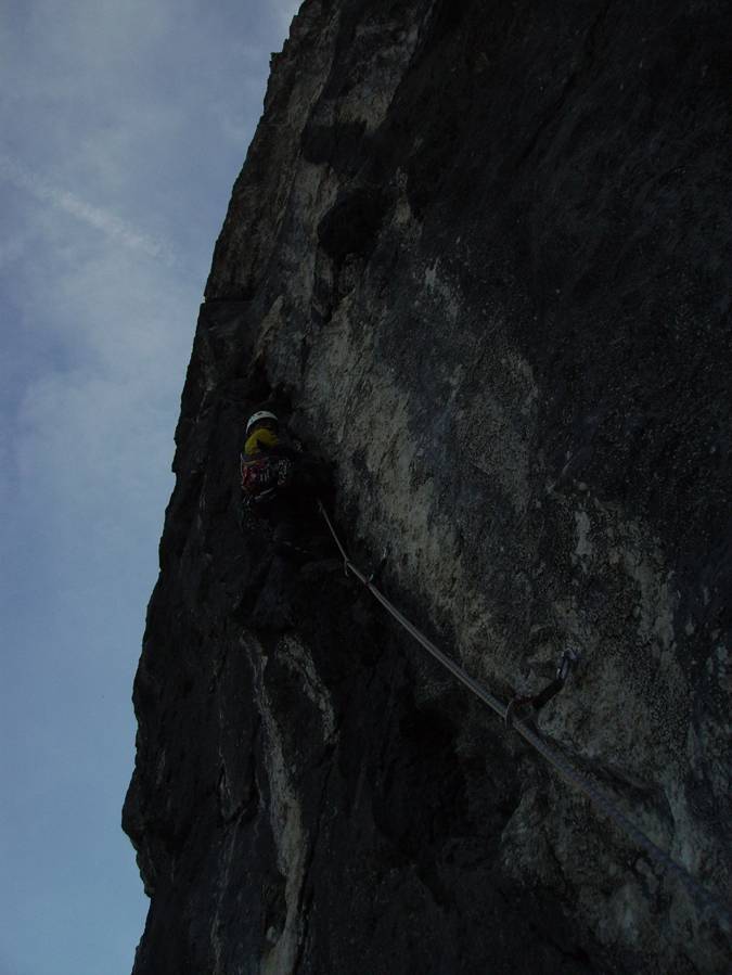 „O tempora, o mores!“ — G. Sussmann in der 2. Länge (7) >Nächstes Foto (Nr. 4 von 12) >Zurück zur Karwendel-Übersicht |