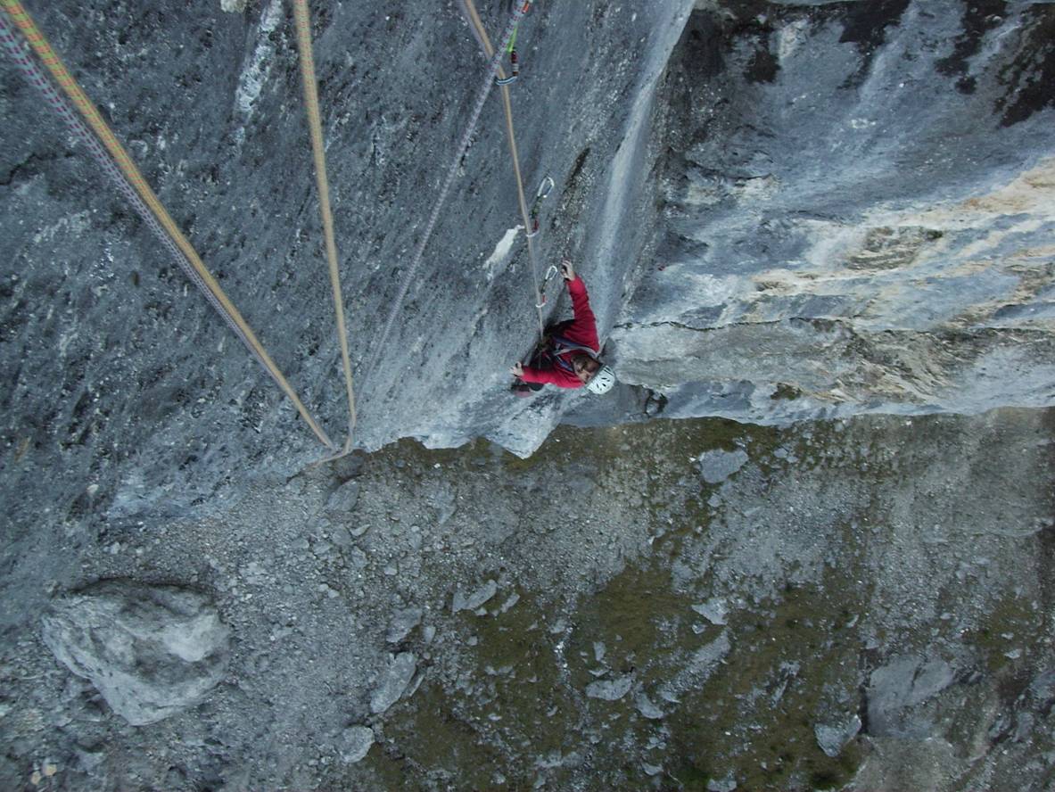 „O tempora, o mores!“ — R. Sussmann in der 4. Länge (8-) >Nächstes Foto (Nr. 7 von 12) >Zurück zur Karwendel-Übersicht |