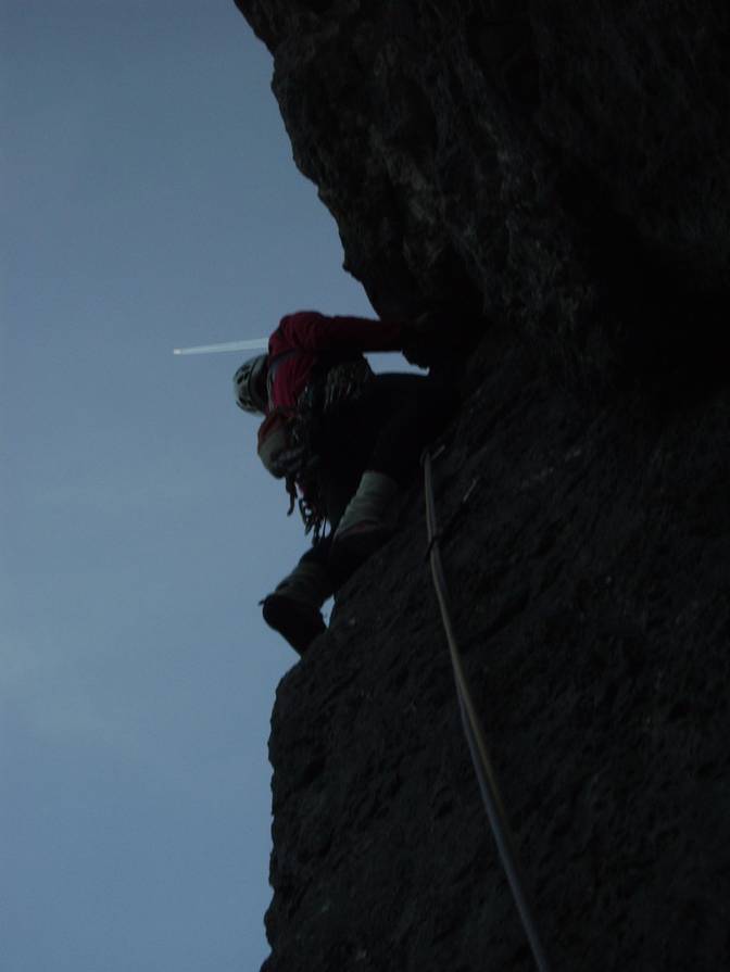 „O tempora, o mores!“ — R. Sussmann in der 5. Länge (7-) >Nächstes Foto (Nr. 10 von 12) >Zurück zur Karwendel-Übersicht |