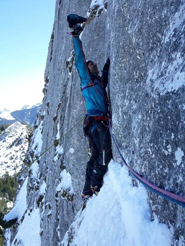 - "The Pillar of Cold Beers" (245 m, M7-, E2+) (pdf-Topo-dwonload) <<Fotos>>