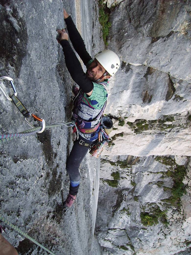 „Riesendach-Verschneidung“ — G. Sussmann in der 8.Länge (8-) >Nächstes Foto (Nr. 7 von 8) >Zurück zur Karwendel-Übersicht |