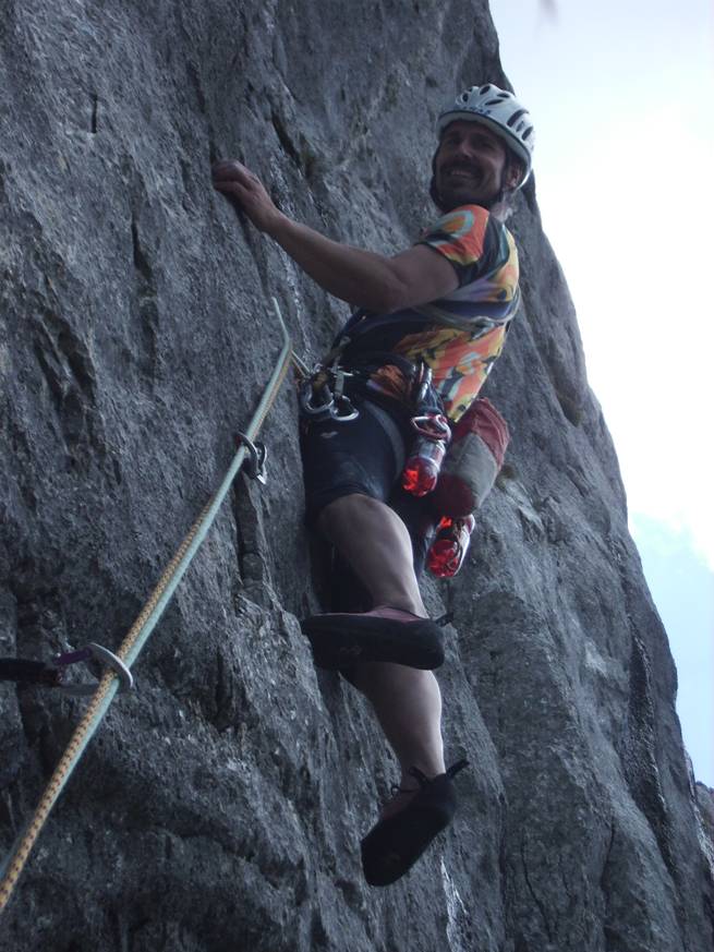 Ralf Sussmann bei der Erstbegehung in der 5. SL (7+) >Nächstes Foto (Nr. 5 von 8) >Zurück zur Karwendel-Übersicht